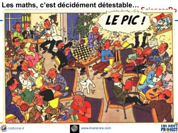 Et donc pour toutes ces ressources-là, sur lesquelles notre économie est assise, vous aurez quelque chose qui s'appelle le pic. Donc, le pic, ce n'est pas une théorie fumeuse, c'est un théorème de maths. Et les théorèmes, comme vous le savez, sont toujours valables dans leur domaine de validité. Il n'y a pas d'exception, sinon ce n'est pas un théorème. C'est même très facile de démontrer qu'un truc n'est pas vrai en maths, vous le savez, il suffit de montrer un cas de figure où ce n'est pas vrai. Donc, un théorème c'est que c'est toujours vrai, il n'y a pas d'exception, ce n'est pas une fois vrai, une fois faux. Toujours vrai! Et là c'est pareil, aucun rêve que je peux avoir, que vous pouvez avoir, que n'importe qui peut avoir pour l'avenir, ne peut exister s'il doit violer un théorème de maths. Ce n'est juste pas possible!